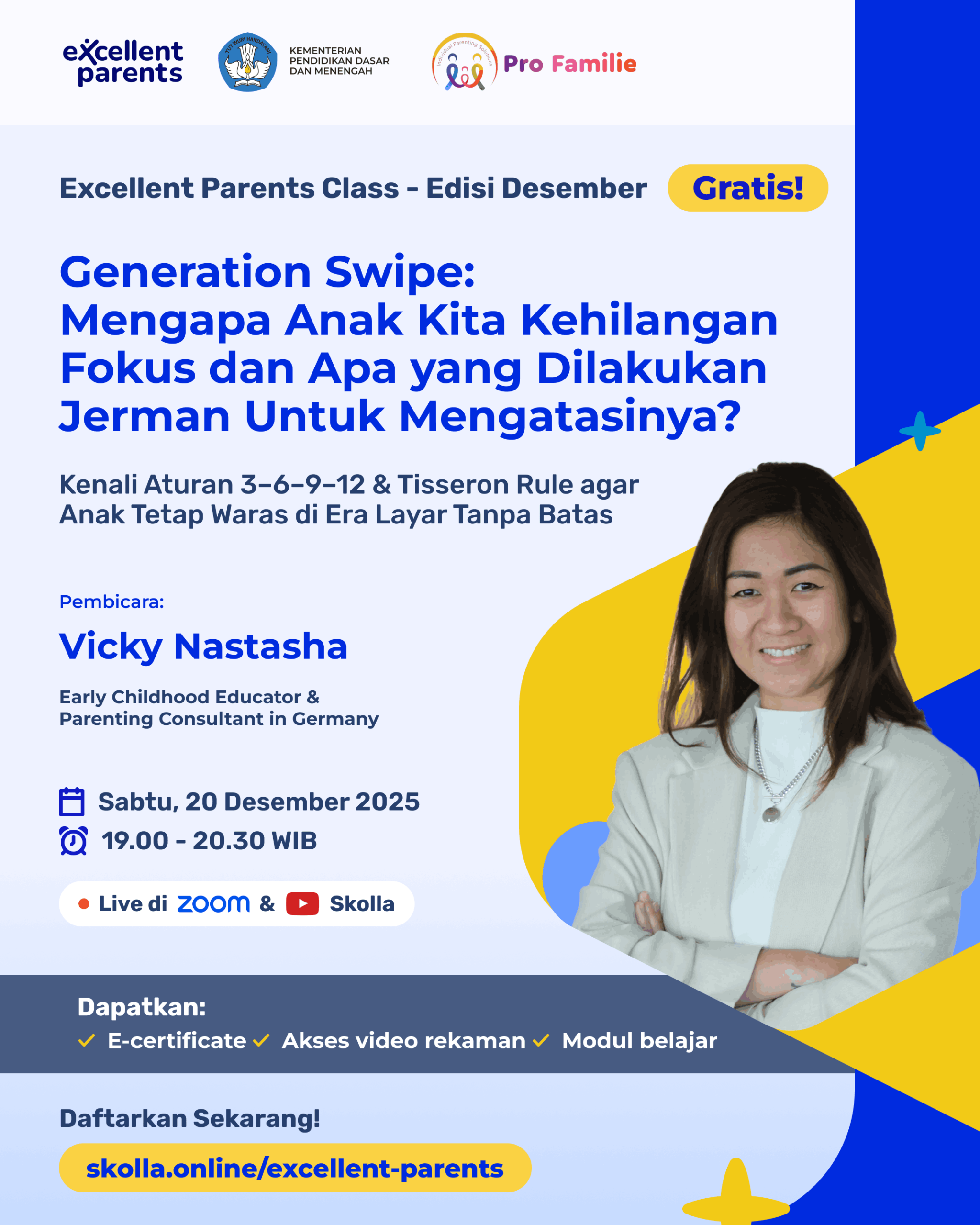Daftar form di bawah untuk mengikuti Kelas Excecellent Parent by Skolla. Gratis!